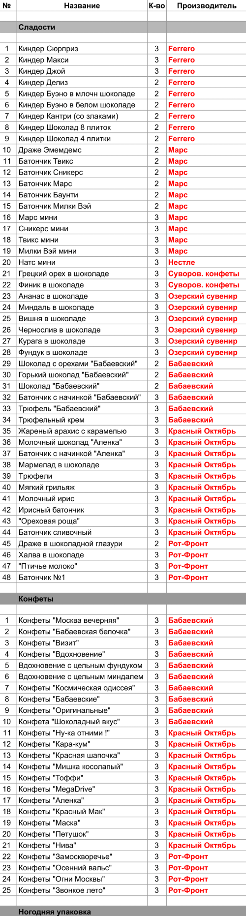 1. Проверить, можно ли внести изменения в состав подарка. Если нет, то скорее всего наборы были собраны еще летом из конфет, произведенных еще раньше